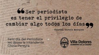 LA INTENDENTE GLORIA PEREYRA SALUDA A TODOS LOS PERIODISTAS EN SU DÍA Reconociendo su labor diaria, y su trabajo y compromiso para con los oyentes, televidentes y lectores de nuestra Ciudad.Feliz día del periodista!VILLA DOLORES Gobierno de la Ciudad