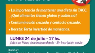 NUEVA CHARLA SOBRE CELIAQUÍA Y DIABETES EN EL SALÓN DEL PASEO DE LA INDEPENDENCIA Si sos celíaco o algún familiar tuyo o amigo lo es, el Gobierno de la Ciudad los invita este lunes 24 desde las 17 horas, a la charla especial de invierno, donde se abordarán distintos temas y se prepararán recetas libres …