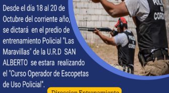 18 DE OCTUBRE DE 2023 UNIDAD REG DPTAL SAN ALBERTO CURSO DE OPERADOR DE ESCOPETA DE USO POLICIAL EN TRASLASIERRA Durante esta semana del 18 de Octubre al 20 de Octubre, en el Predio de Entrenamiento Policial de las Maravillas, en la localidad de Villa Cura Brochero, se llevara a cabo el Segundo Curso de …