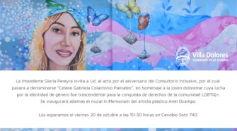 La Intendente Gloria Pereyra los invita al acto por el aniversario del Consultorio Inclusivo Villa Dolores, que pasará a llamarse Celene Gabriela Colantonio Pantaleo, en el cual se inaugurará el mural In Memoriam de la joven dolorense cuya lucha por la identidad de género fue trascendental para la conquista de derechos de la comunidad LGBTIQ+. …