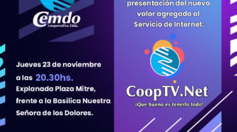 🌟 ¡Este jueves a las 20:30 en Plaza Mitre, viví el lanzamiento de COOP TV.NET con la Cooperativa CEMDO LTDA.!📺🌐 Descubrí el futuro de Internet más Televisión.COOP TV.NET¡Que bueno es tenerlo todo!