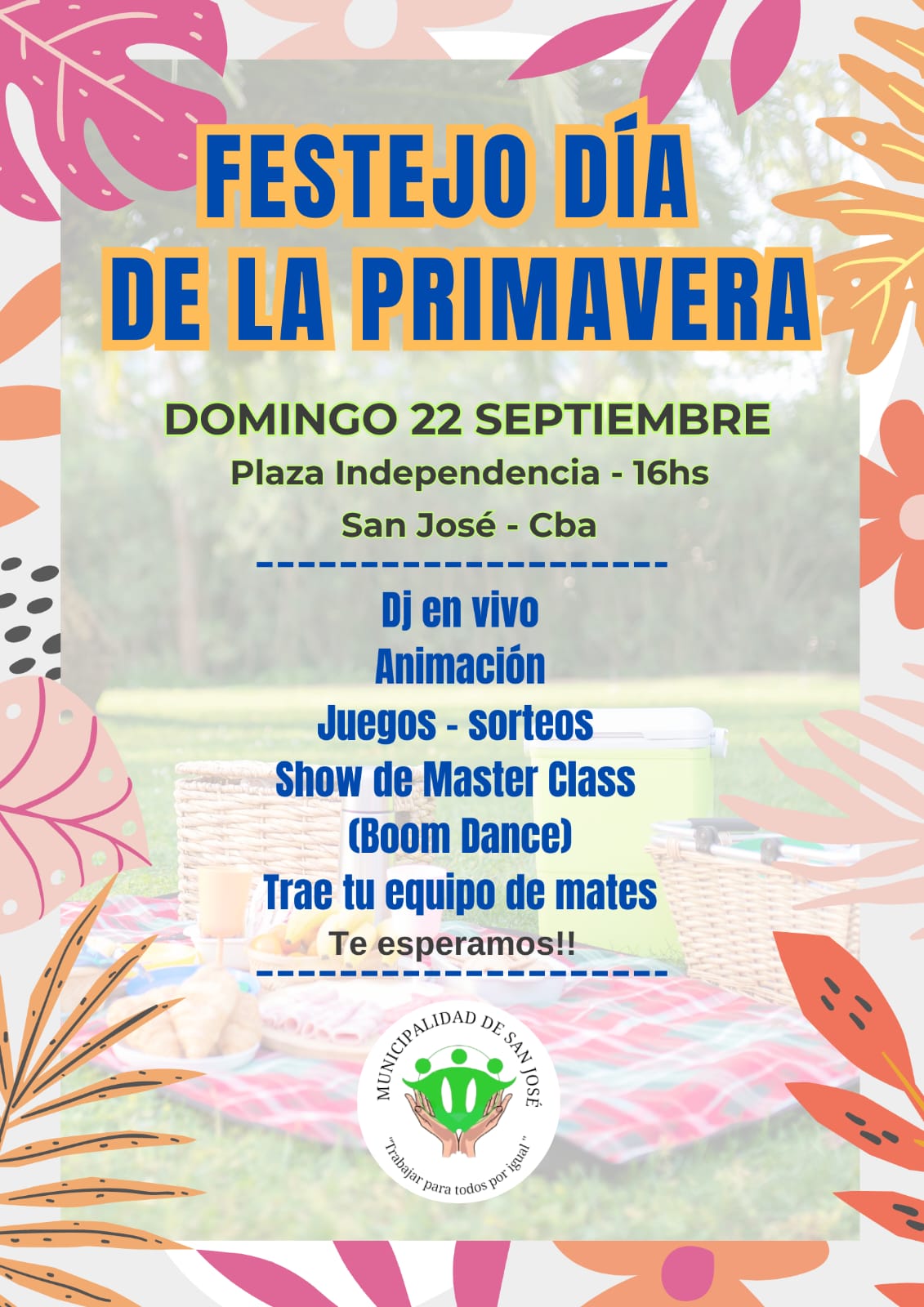 Tenemos el agrado de invitarlos a festejar el día de la primavera en plaza de nuestro pueblo, Domingo 22 de Septiembre, Plaza Independencia, a partir de las 16:00hs.