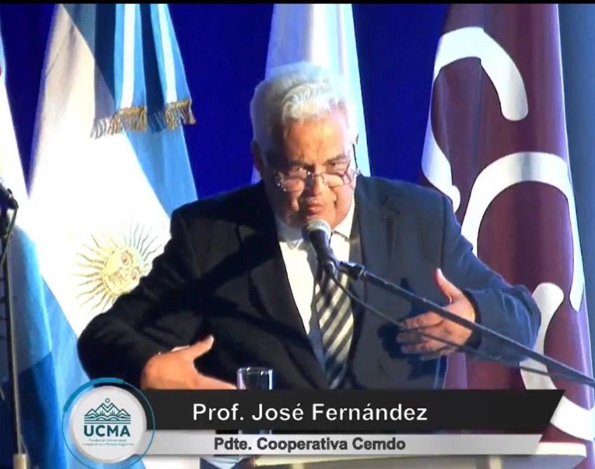 José Fernández, presidente del Consejo de Administración de Cemdo Ltda., subrayó durante su discurso que “Córdoba siempre va a la vanguardia en materia educativa”, destacando que esta universidad es un nuevo ejemplo de esa tradición. Fernández añadió: «No hay realización personal si no hay una realización comunitaria, como también sabemos que no hay pueblos pujantes sin regiones desarrolladas, como tampoco hay provincias sostenibles sin un país integrado, solidario y con sueños. Desde el noroeste de Córdoba le decimos al país que esta Universidad Cooperativa y Mutual Argentina debe ser para todos».