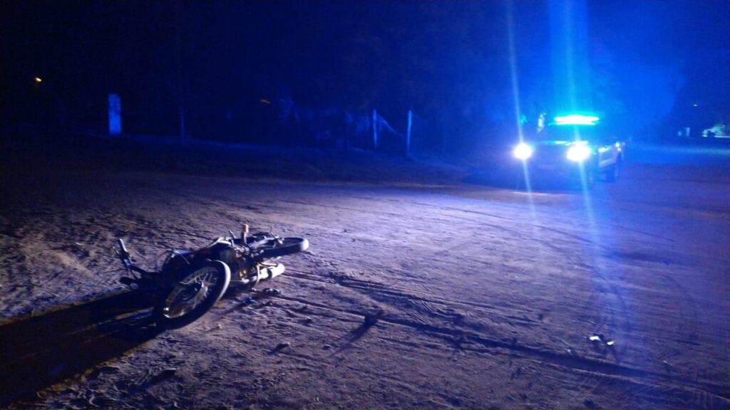 Lunes, 02:35 hs. En calle Eva Perón y 20 de Junio, una motocicleta 150cc conducida por un menor de 16 años, acompañado por un joven de 18 años, colisionó contra un can. Ambos fueron trasladados al Hospital Regional, donde el menor fue diagnosticado con fractura de clavícula y el acompañante sufrió un esguince de tobillo.