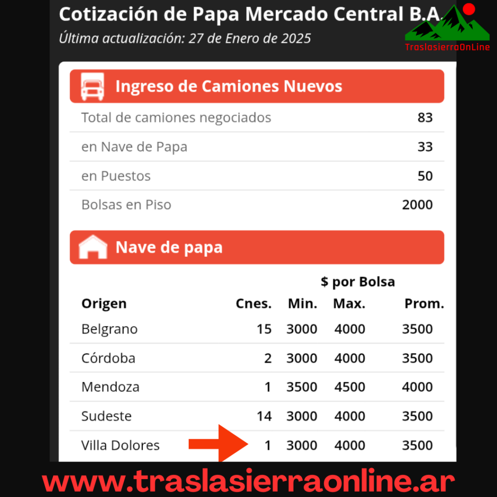 COTIZACION DE PAPA EN MERCADO DE BUENOS AIRES