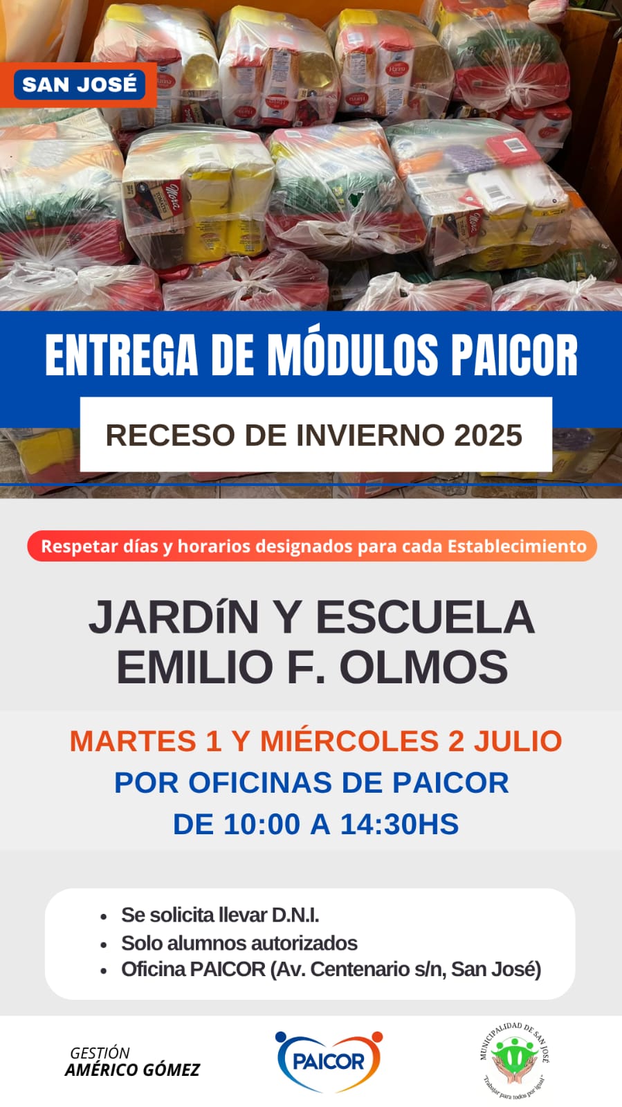 Interés GeneralSAN JOSE Mañana Martes 1 de Julio, se comienzan a entregar los módulos Paicor en San José Julio Lopez 30/06/2025 1.3k Views Mañana Martes 1 de Julio, se comienzan a entregar los módulos Paicor en San José, Respetar días y horarios detallados. Gestión: Américo Gómez«Trabajar para todos por igual»