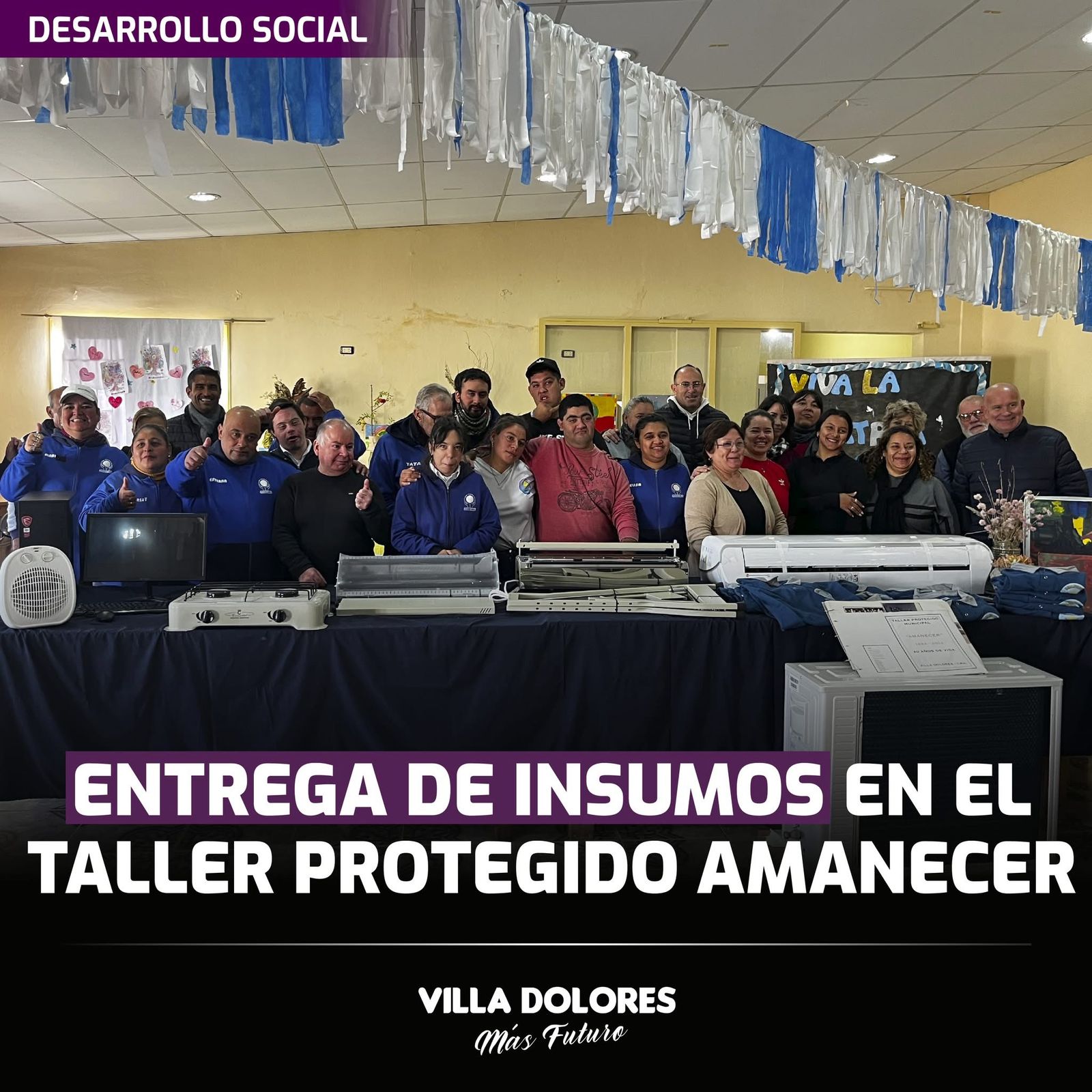 ENTREGA DE INSUMOS AL TALLER PROTEGIDO AMANECER El Taller Protegido Amanecer de nuestra ciudad recibió nuevos insumos: un aire acondicionado frío/calor de 8000 frigorías, una máquina selladora y cortadora de bolsas de residuos, una computadora completa, caloventores, anafe, remeras y camperas de abrigo. La entrega se realizó hoy en el Taller, fortaleciendo el trabajo diario …