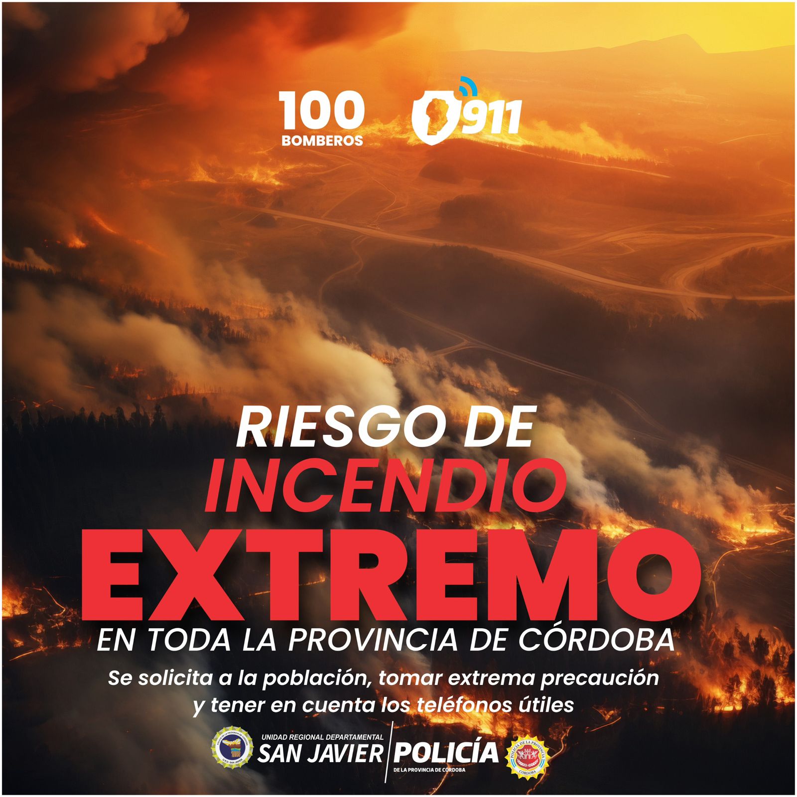 POLICÍA DE LA PCIA. DE CBA.U.R.D. SAN JAVIER ⚠️ ALERTA INCENDIOS 🔥 🧾 Por Decreto Provincial, desde el 2 de junio rige el estado de Alerta Ambiental hasta el 31 de diciembre de 2025, debido a condiciones climáticas que favorecen el inicio de incendios. 🌬️ Para este fin de semana se prevé alerta meteorológica por …