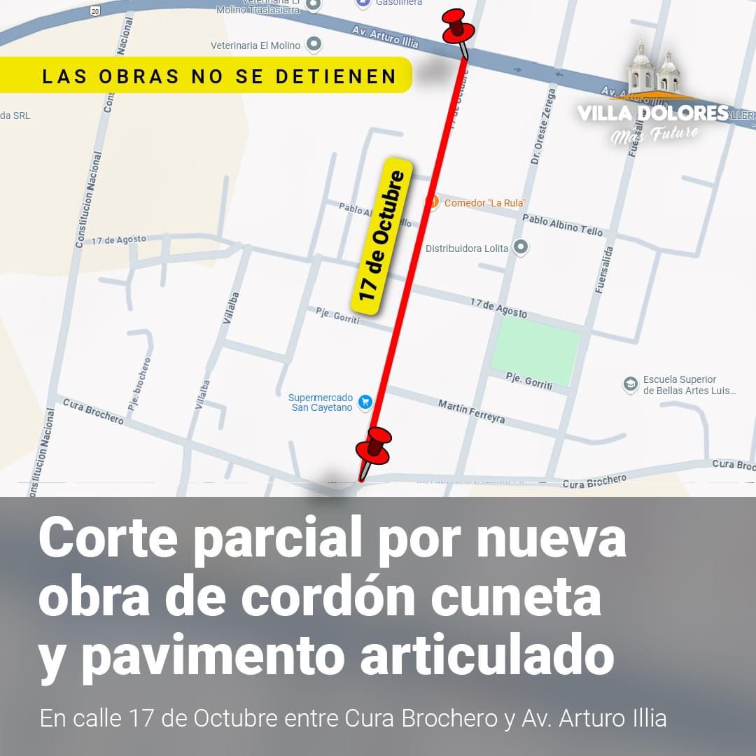 INFORMACIÓN IMPORTANTE: CORTE DE CALLE POR NUEVA OBRA DE PAVIMENTO ARTICULADO Informamos a los vecinos, que a partir de este lunes 11 de noviembre daremos comienzo a la obra de cordón cuneta y pavimento articulado en la calle 17 de octubre. Debido a esto, se llevará a cabo un corte parcial en el tramo comprendido …