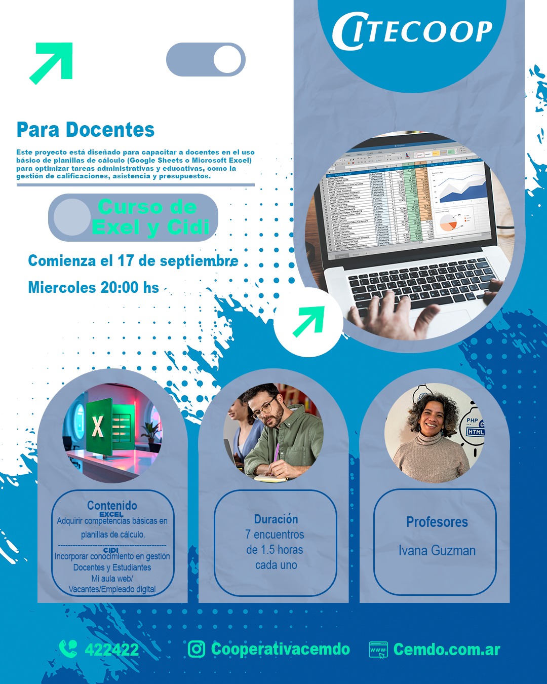 📚 PARA DOCENTES Este proyecto está diseñado para capacitar a docentes en el uso básico de planillas de cálculo 🧮 (Google Sheets o Microsoft Excel 💻)para optimizar tareas administrativas y educativas, como:✅ La gestión de calificaciones,✅ El control de asistencia,✅ El manejo de presupuestos 💰.🗓️ Comienza el 17 de septiembre🕗 Miércoles, 20:00 hs
