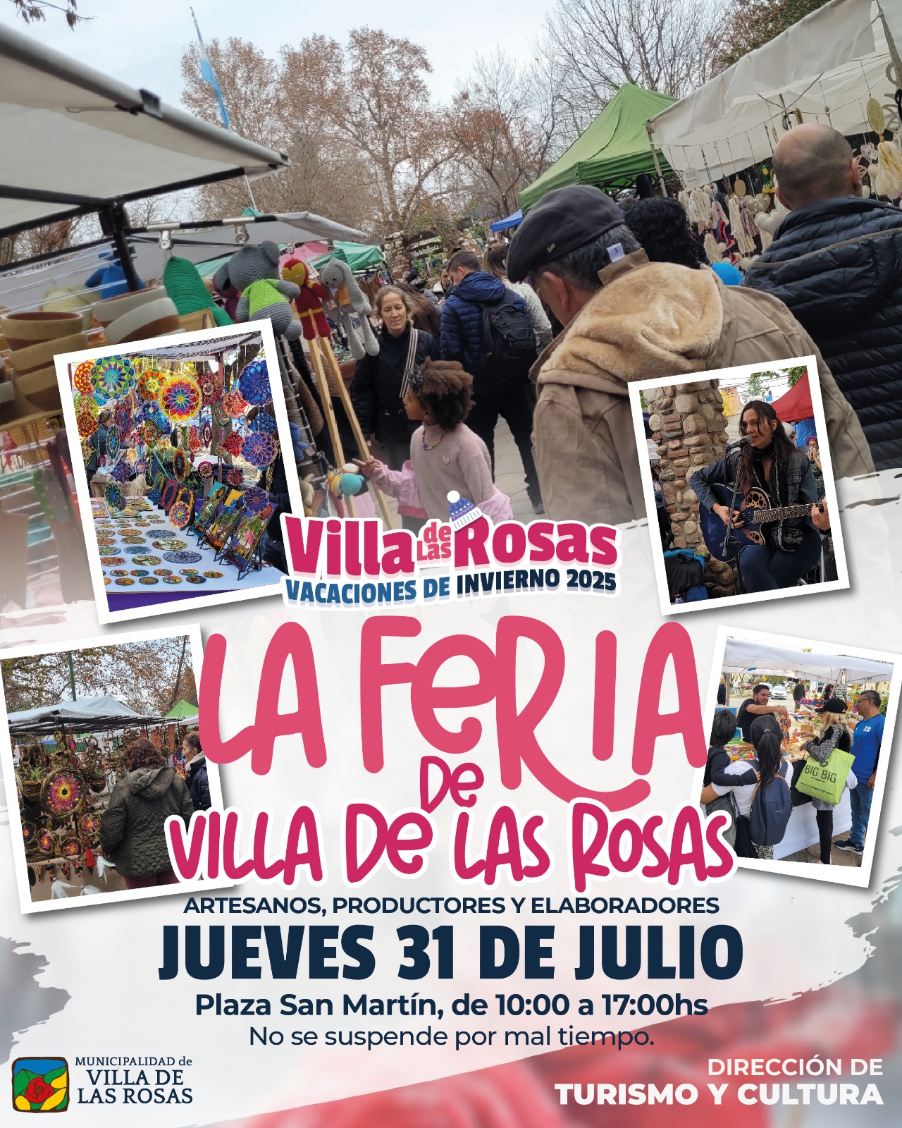 ¡ESTE JUEVES, EL MEJOR PLAN ESTÁ EN VILLA DE LAS ROSAS! 🌹🌹 ❄️ Durante las Vacaciones de Invierno, la feria también abre los jueves, y este 31 de julio te espera con todo el color, el sabor y la buena energía del corazón de Traslasierra. 🌈✨ 🧶 Artesanías únicas, 🍲 gastronomía para todos los gustos, …